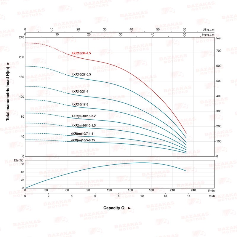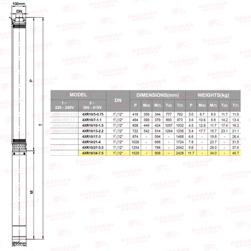 Αντλία υποβρύχια γεωτρήσεων 4" σκέτη με πλαστικές φτερωτές LEO 4XR10/36