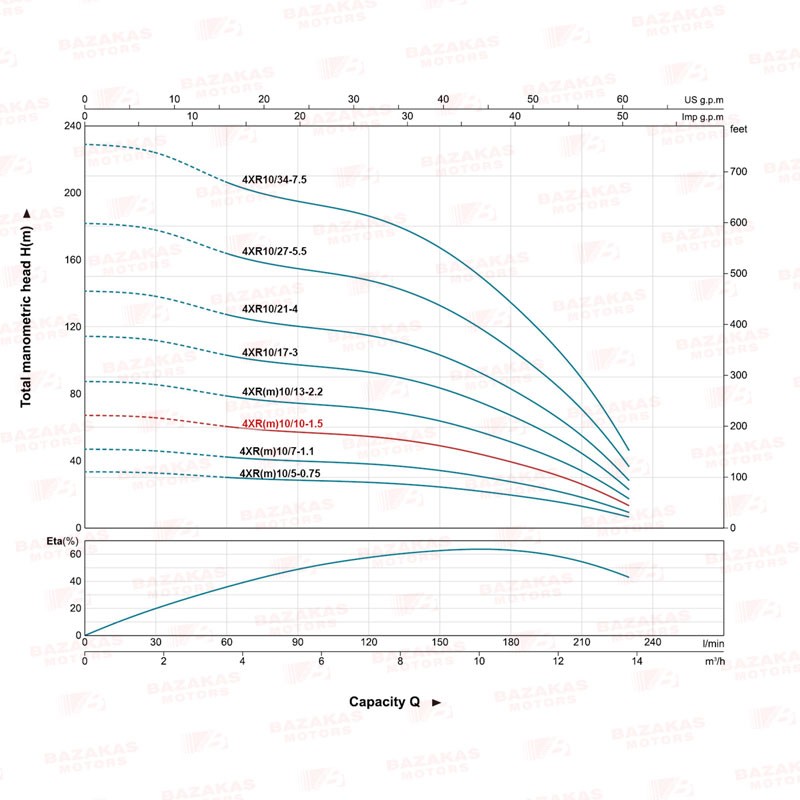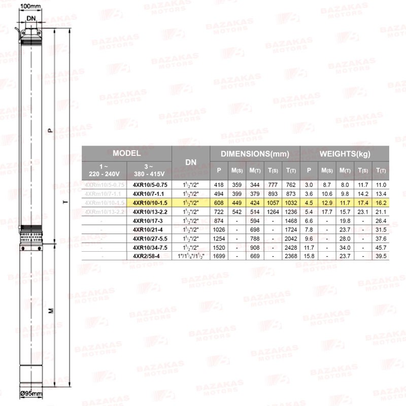 Αντλία υποβρύχια γεωτρήσεων 4" σκέτη με πλαστικές φτερωτές LEO 4XR10/10