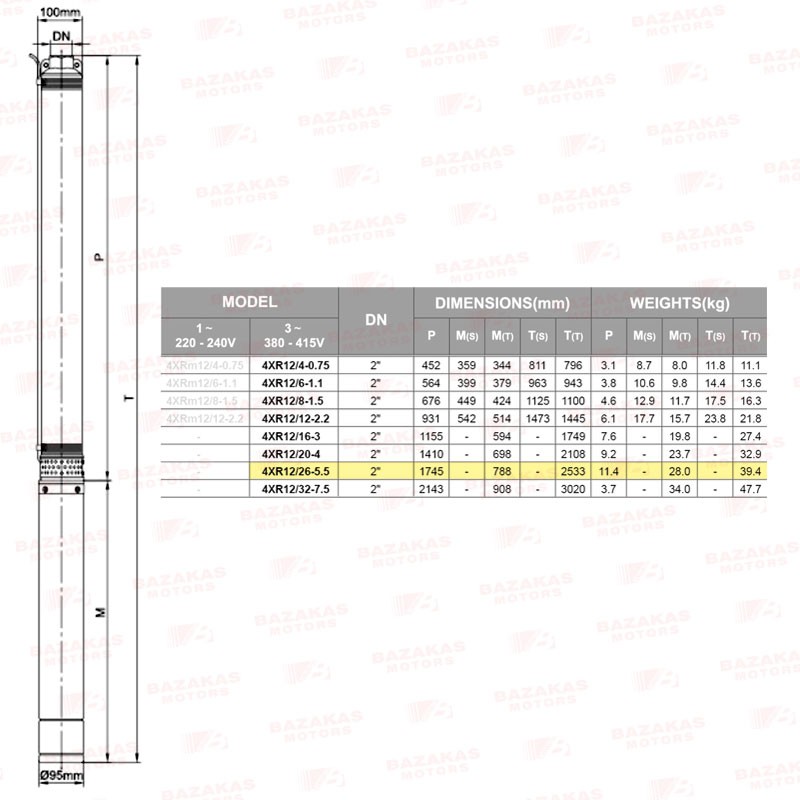 Αντλία υποβρύχια γεωτρήσεων 4" σκέτη με πλαστικές φτερωτές LEO 4XR12/26