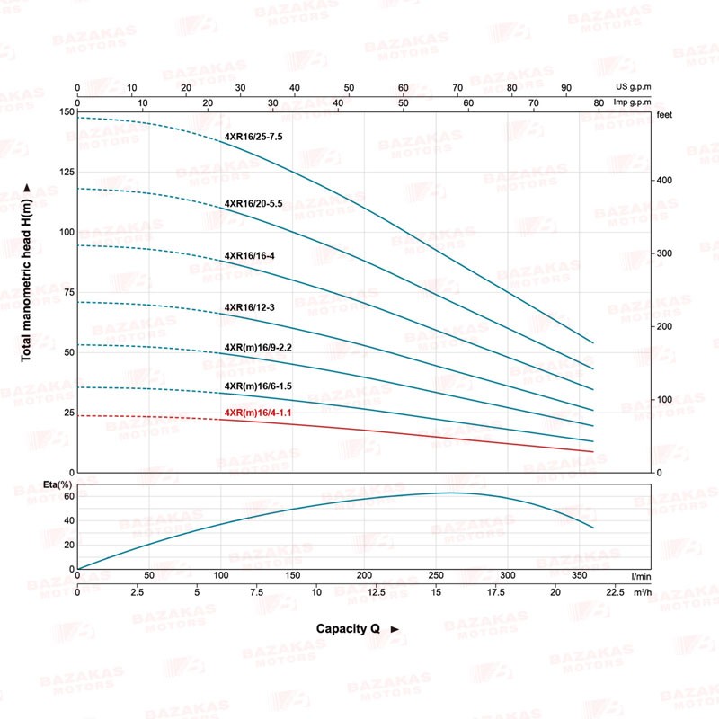 Αντλία υποβρύχια γεωτρήσεων 4" σκέτη με πλαστικές φτερωτές LEO 4XR16/4