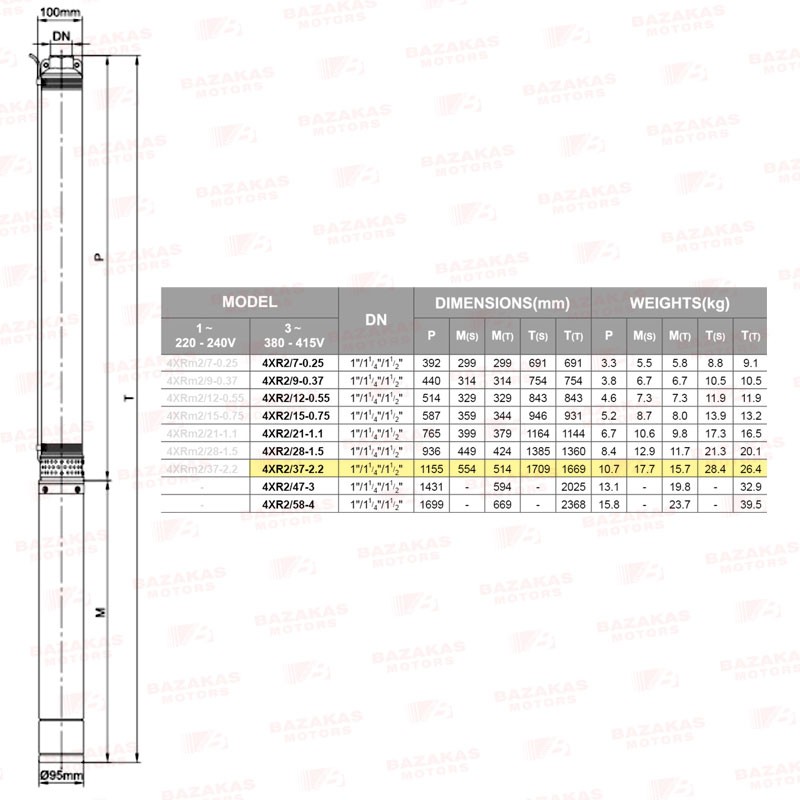 Αντλία υποβρύχια γεωτρήσεων 4" σκέτη με πλαστικές φτερωτές LEO 4XR2/37