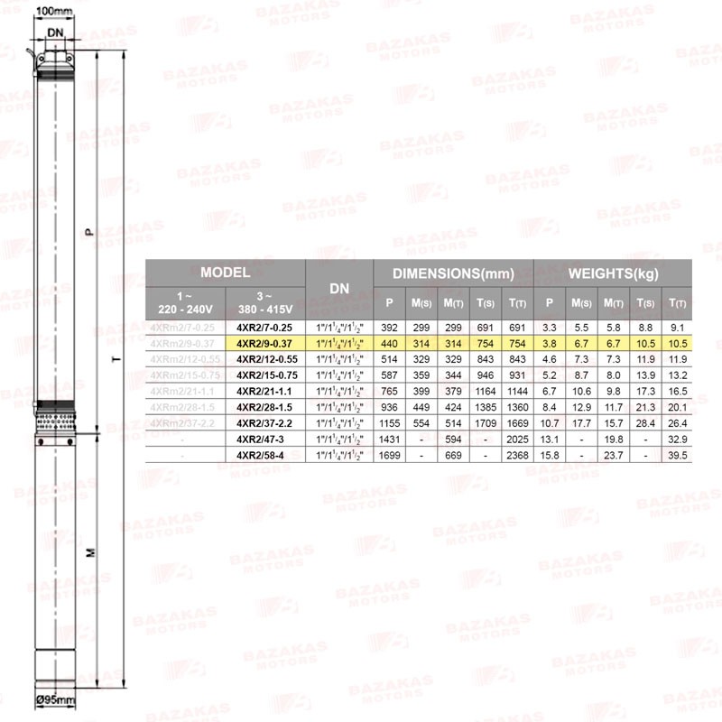 Αντλία υποβρύχια γεωτρήσεων 4" σκέτη με πλαστικές φτερωτές LEO 4XR2/9