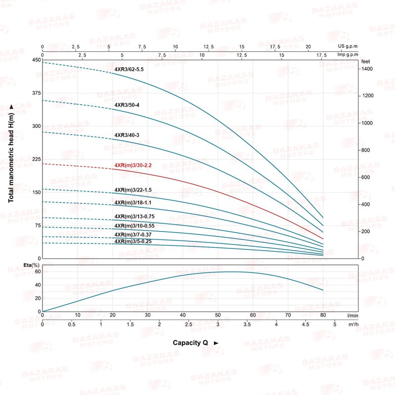 Αντλία υποβρύχια γεωτρήσεων 4" σκέτη με πλαστικές φτερωτές LEO 4XR3/30