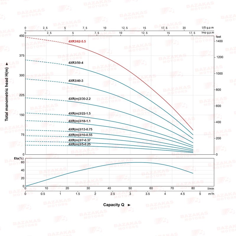 Αντλία υποβρύχια γεωτρήσεων 4" σκέτη με πλαστικές φτερωτές LEO 4XR3/62