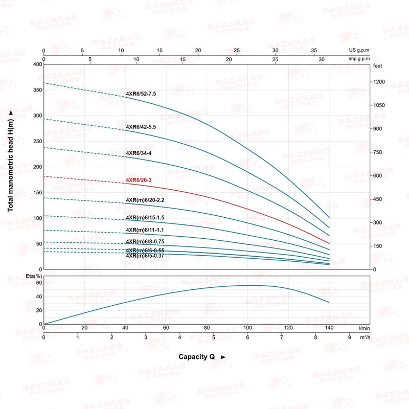 - Μέγιστο μανομετρικό 164m