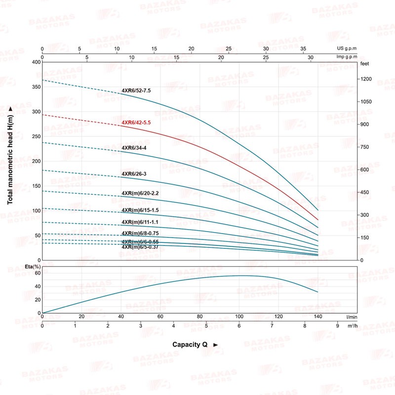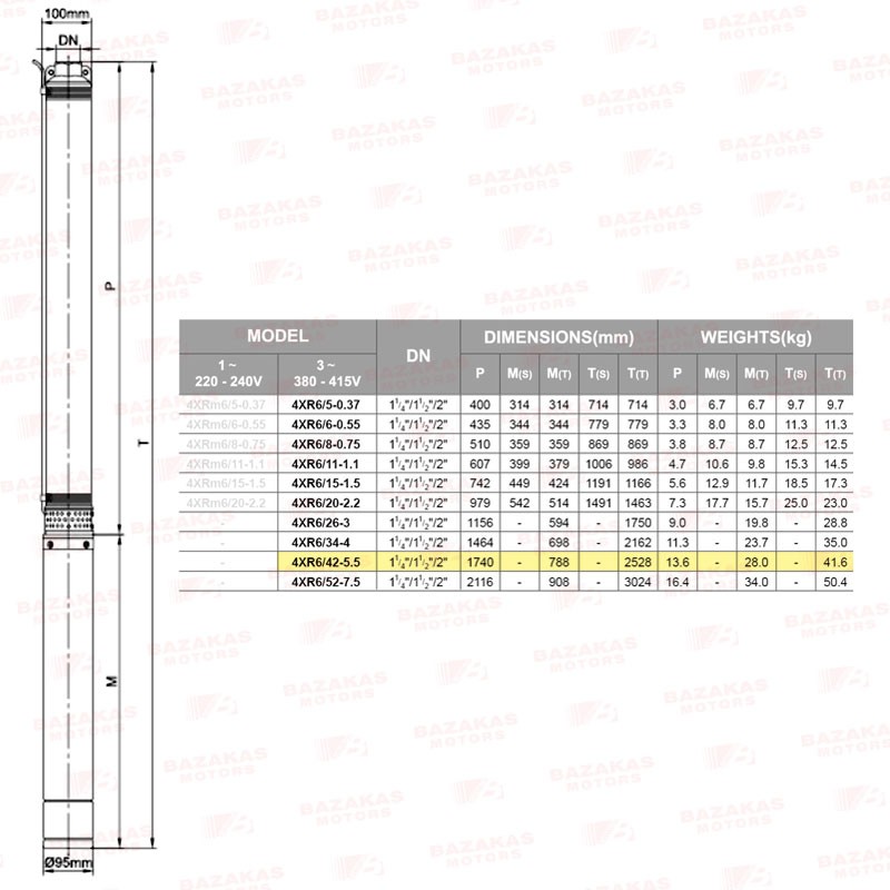 Αντλία υποβρύχια γεωτρήσεων 4" σκέτη με πλαστικές φτερωτές LEO 4XR6/42