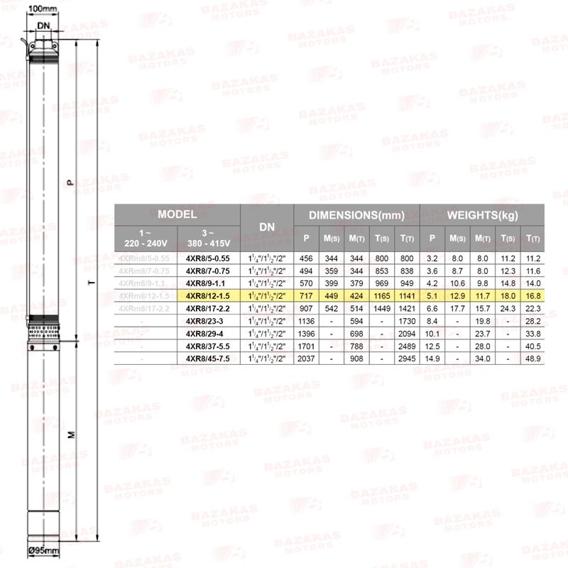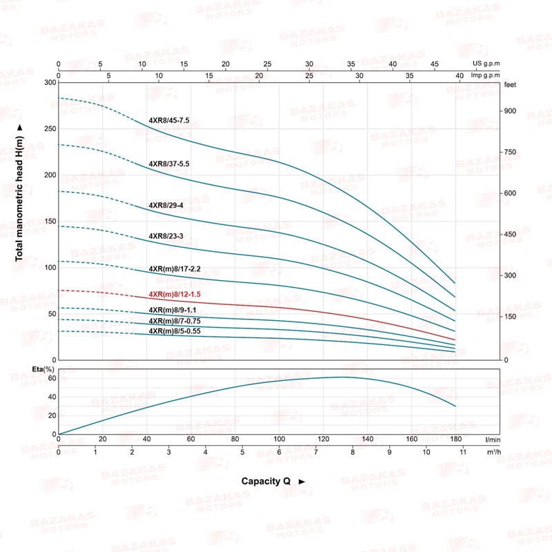 Αντλία υποβρύχια γεωτρήσεων 4" σκέτη με πλαστικές φτερωτές LEO 4XR8/12