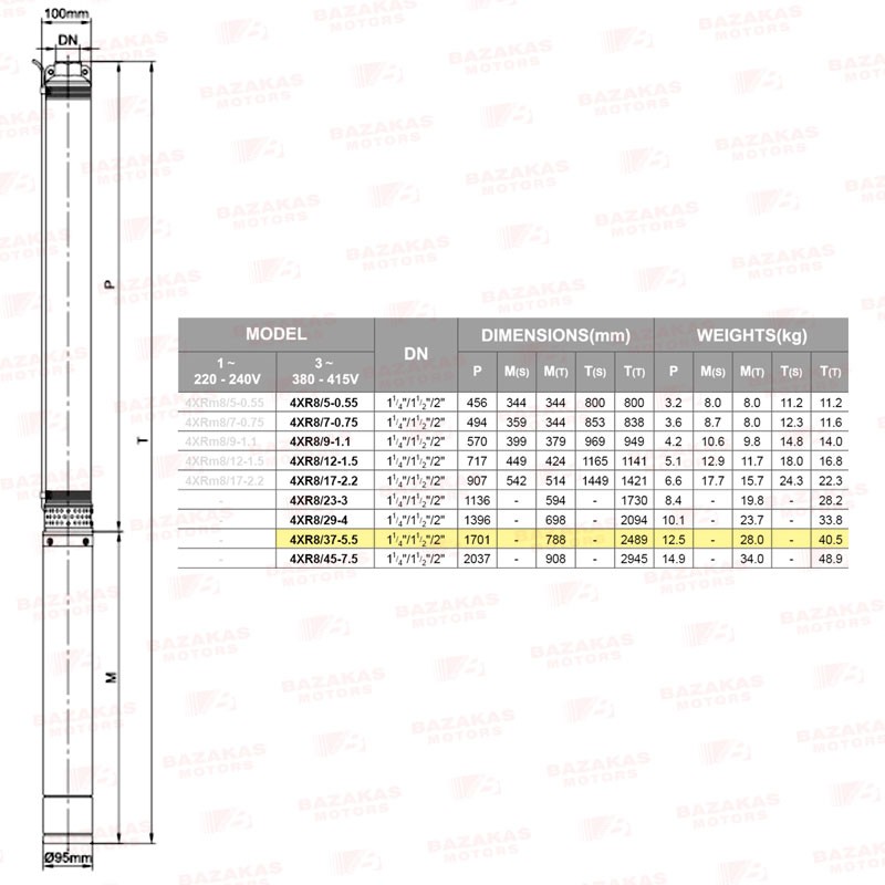Αντλία υποβρύχια γεωτρήσεων 4" σκέτη με πλαστικές φτερωτές LEO 4XR8/37
