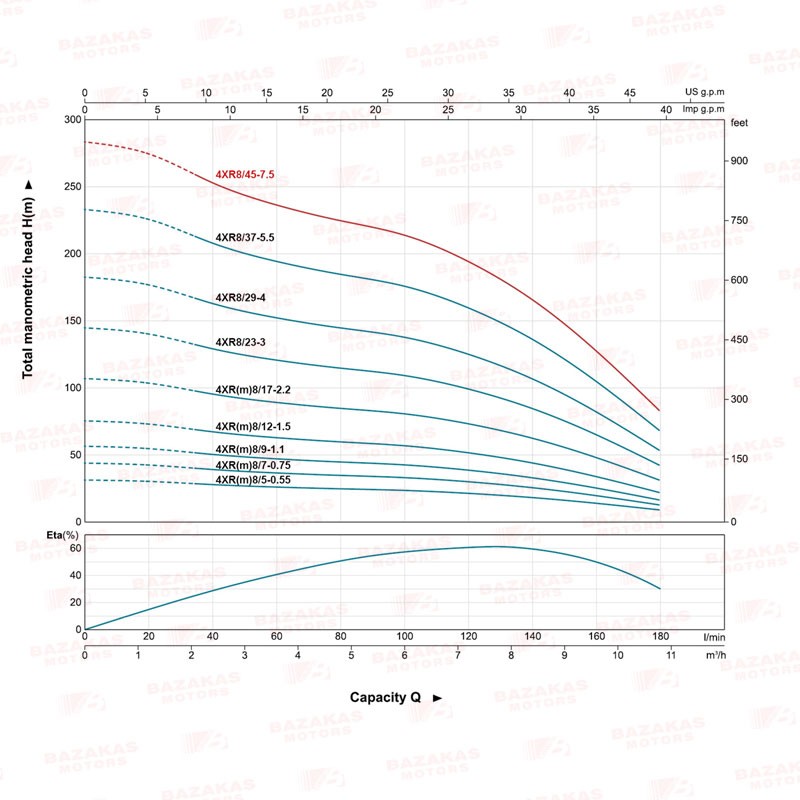 Αντλία υποβρύχια γεωτρήσεων 4" σκέτη με πλαστικές φτερωτές LEO 4XR8/45