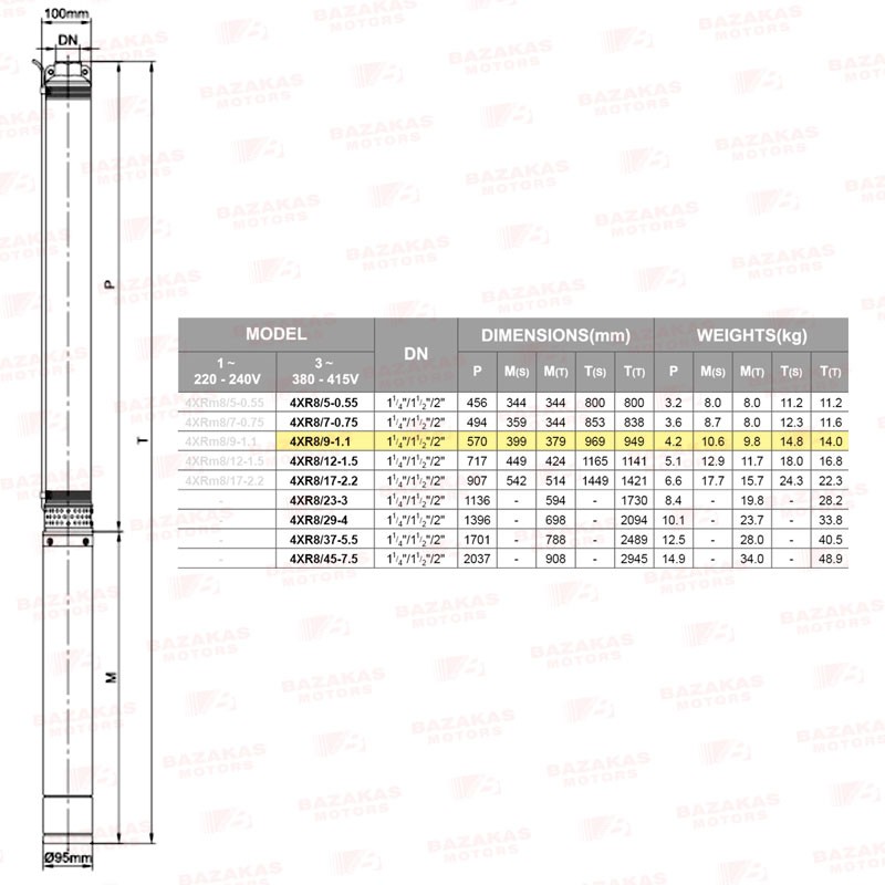 Αντλία υποβρύχια γεωτρήσεων 4" σκέτη με πλαστικές φτερωτές LEO 4XR8/9