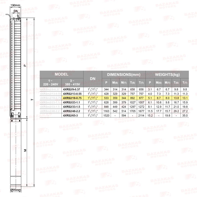 Αντλία υποβρύχια γεωτρήσεων 4" σκέτη με ανοξείδωτες φτερωτές LEO 4XRS 2/18 INOX