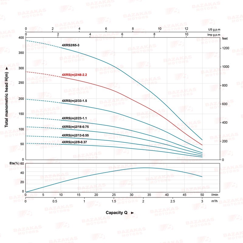 - Μέγιστο μανομετρικό 241m