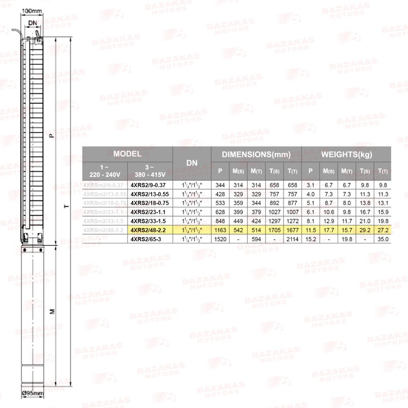 Αντλία υποβρύχια γεωτρήσεων 4" σκέτη με ανοξείδωτες φτερωτές LEO 4XRS 2/48 INOX