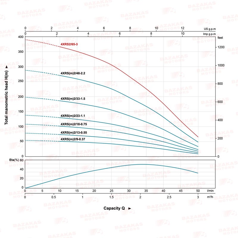 - Μέγιστο μανομετρικό 326m