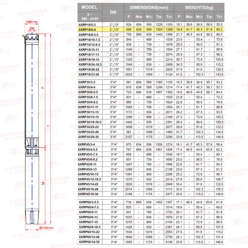 Αντλία υποβρύχια γεωτρήσεων 6" σκέτη με πλαστικές φτερωτές LEO 6XRP18/6