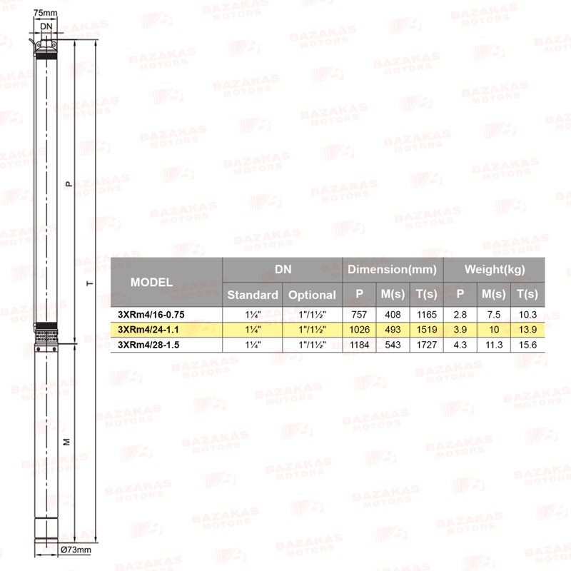Αντλία υποβρύχια, ειδική γεωτρήσεων 3"  LEO 3XRm4/24