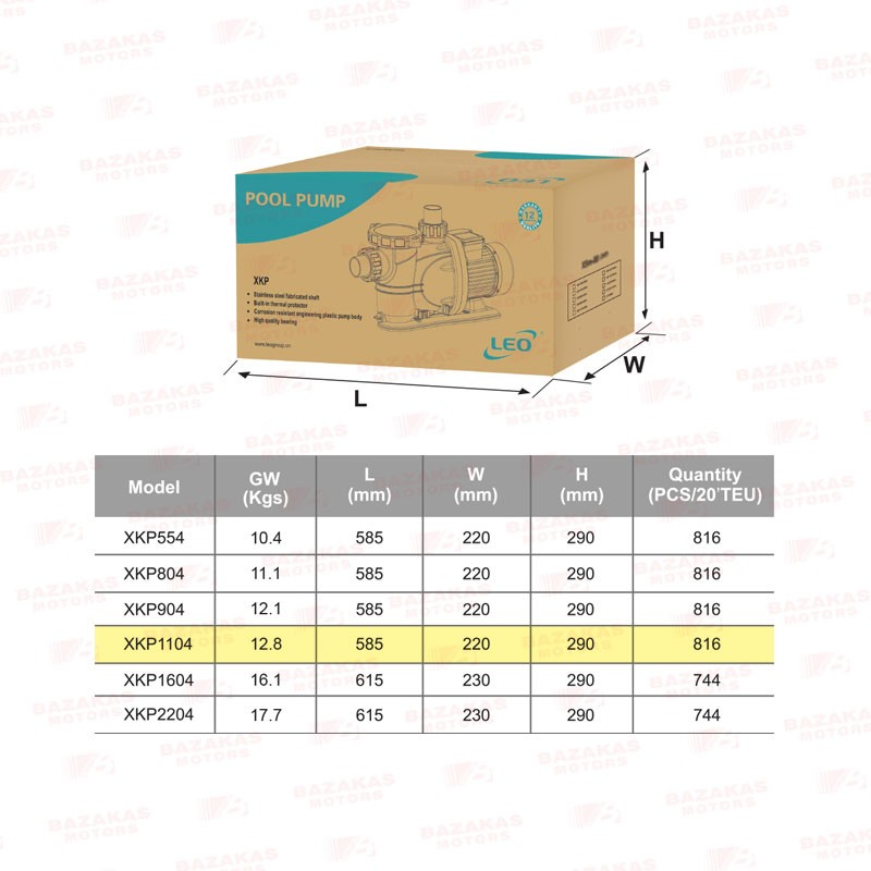 Ηλεκτραντλία πισίνας με προφίλτρο LEO XKP1104