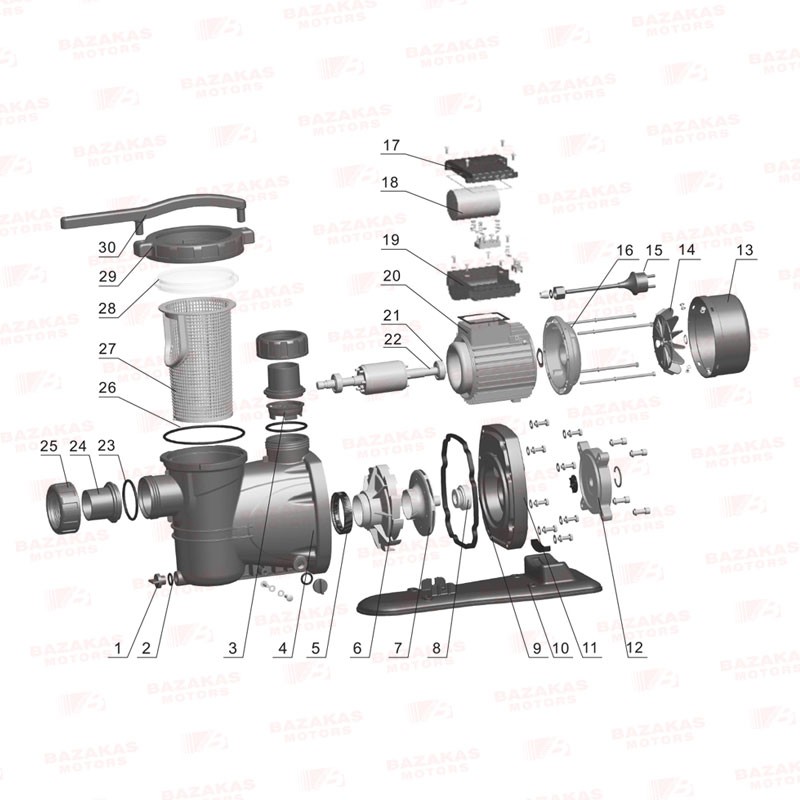 Ηλεκτραντλία πισίνας με προφίλτρο LEO XKP1604