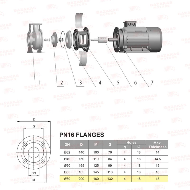 Τριφασική 380V, φυγοκεντρική, ανοξείδωτη, φλαντζωτή, με ανοξείδωτη φτερωτή