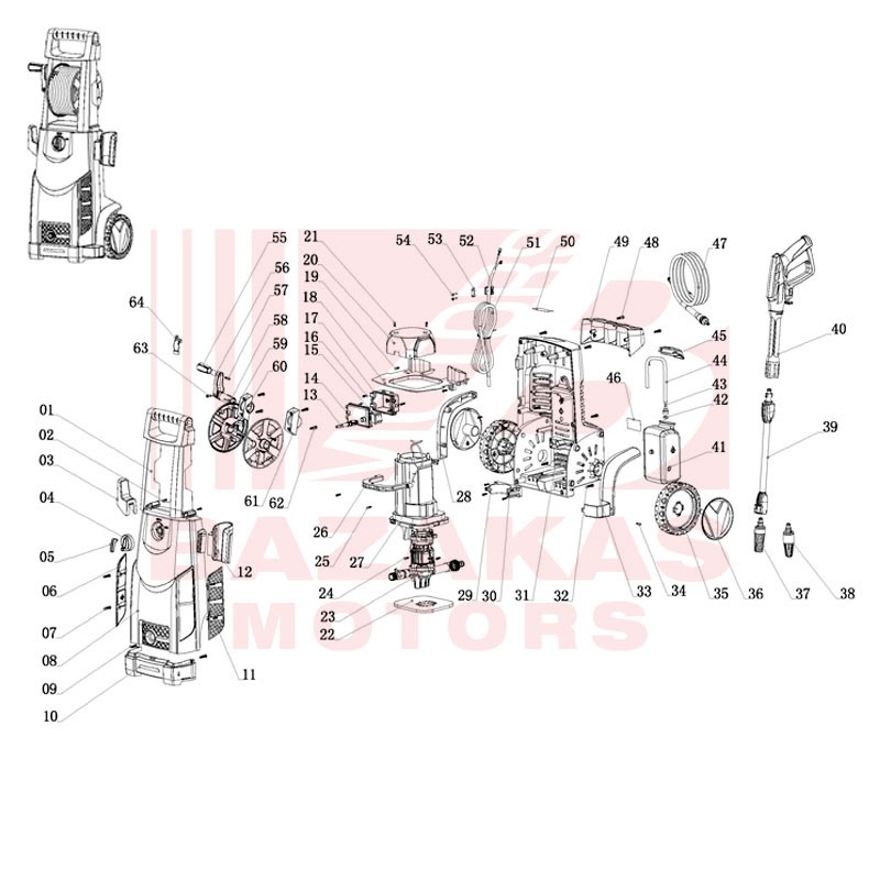Με πιστόλα, σωλήνα πιέσεως, μπεκ + Turbo μπεκ, δοχείο χημικού καθαρισμού & φίλτρο νερού